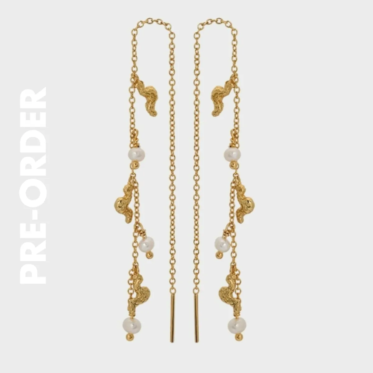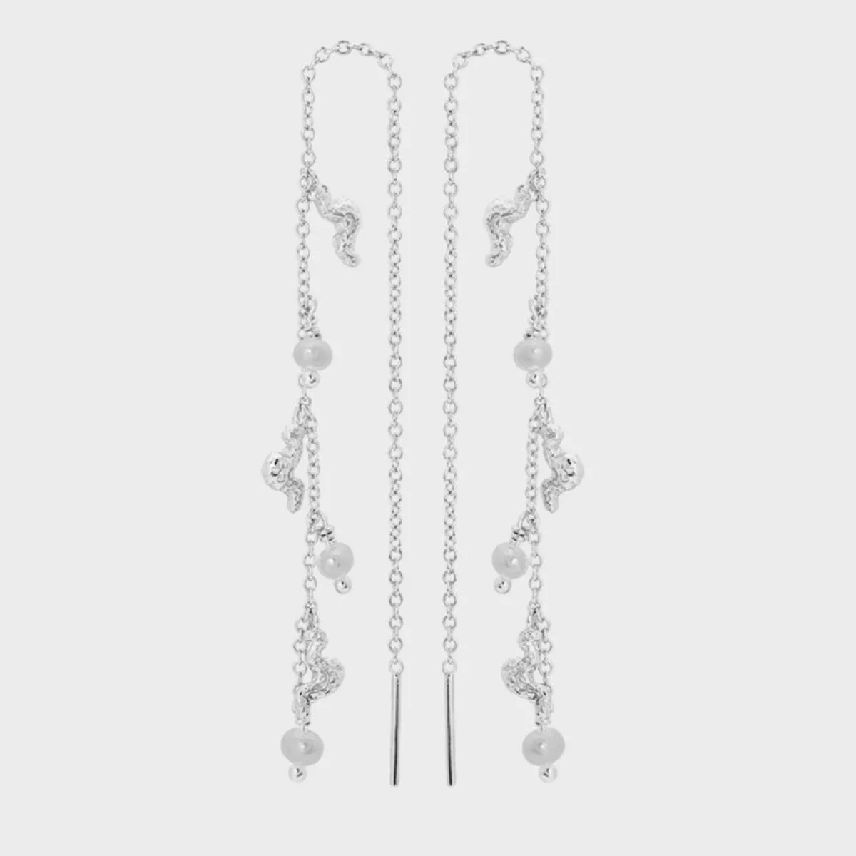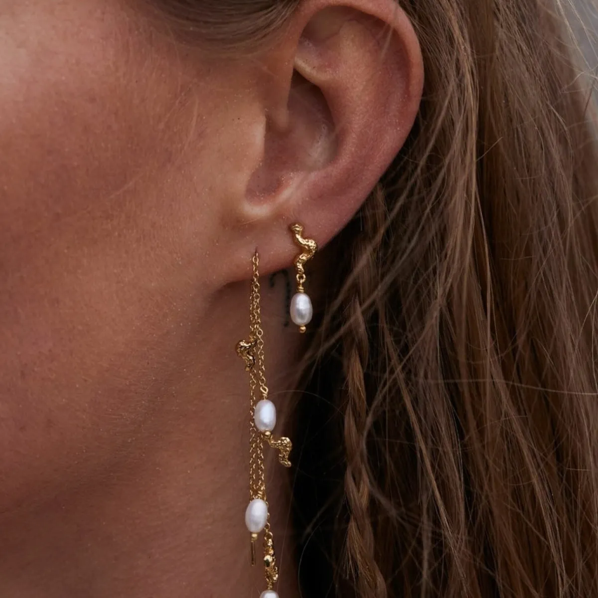 Klassiske perleøreringe, med smukke bølgeformet vedhæng. Style dem med andre smykker fra REEF-kollektionen.