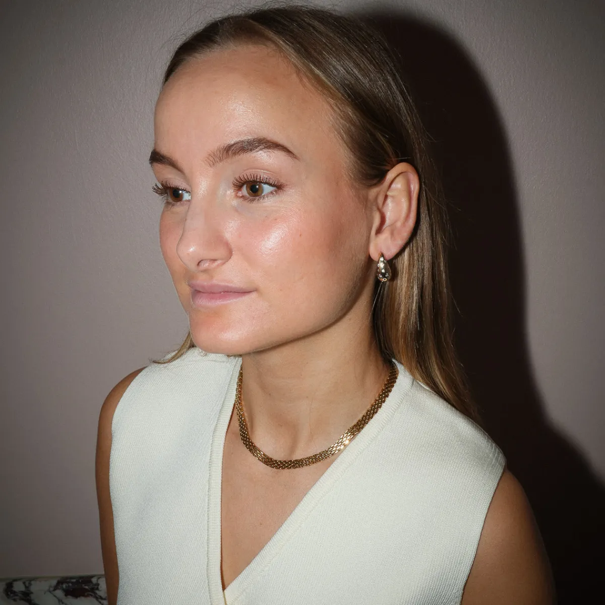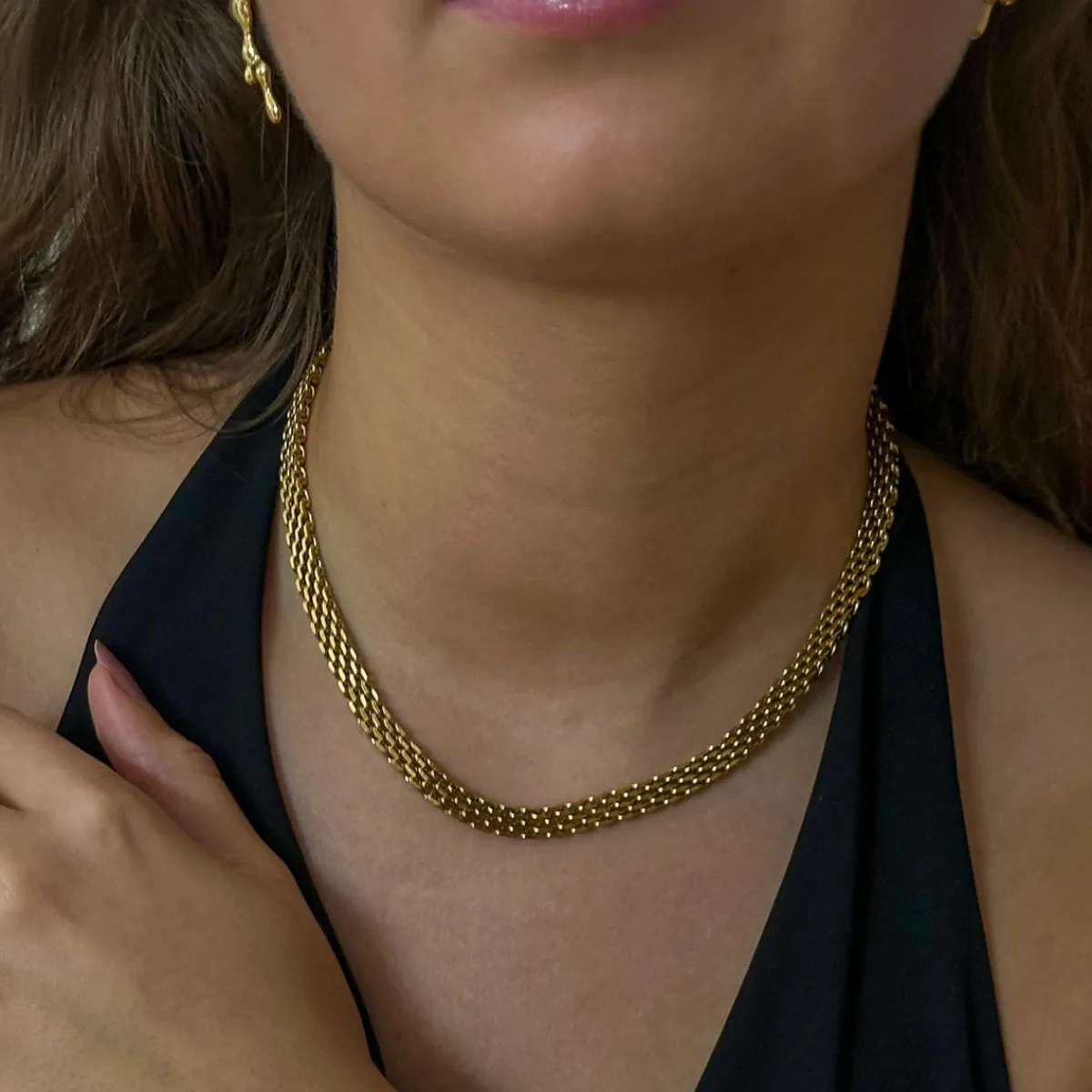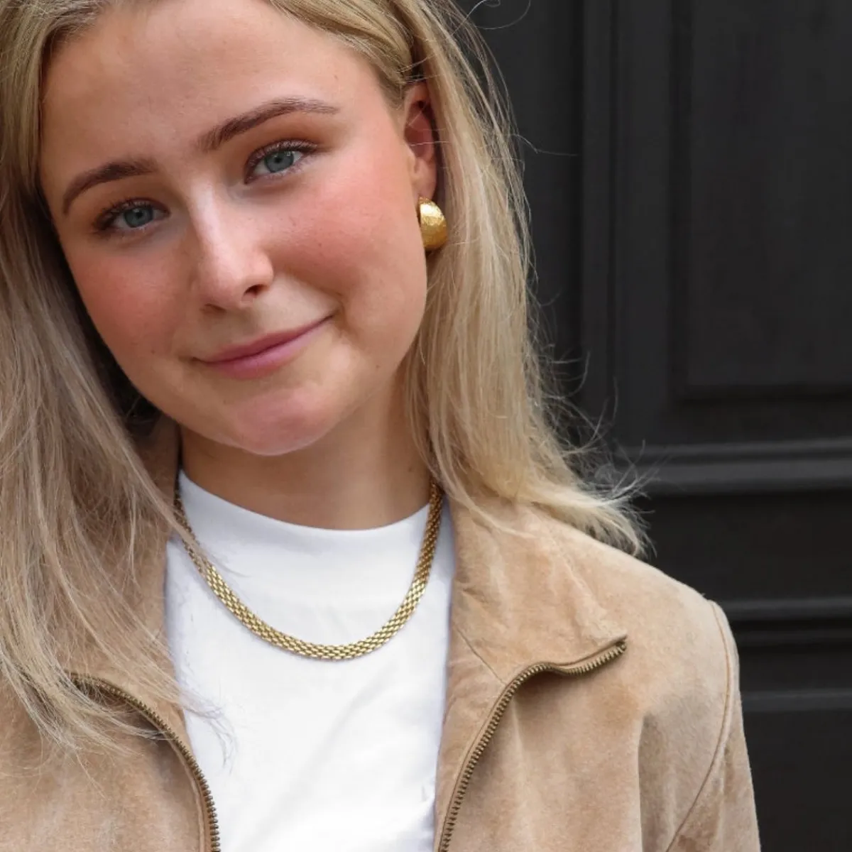 Denne flotte halskæde er i et tidløst design, der kombinerer struktur og elegance. Det unikke mønster giver halskæden et raffineret udtryk, perfekt til både hverdag og fest.