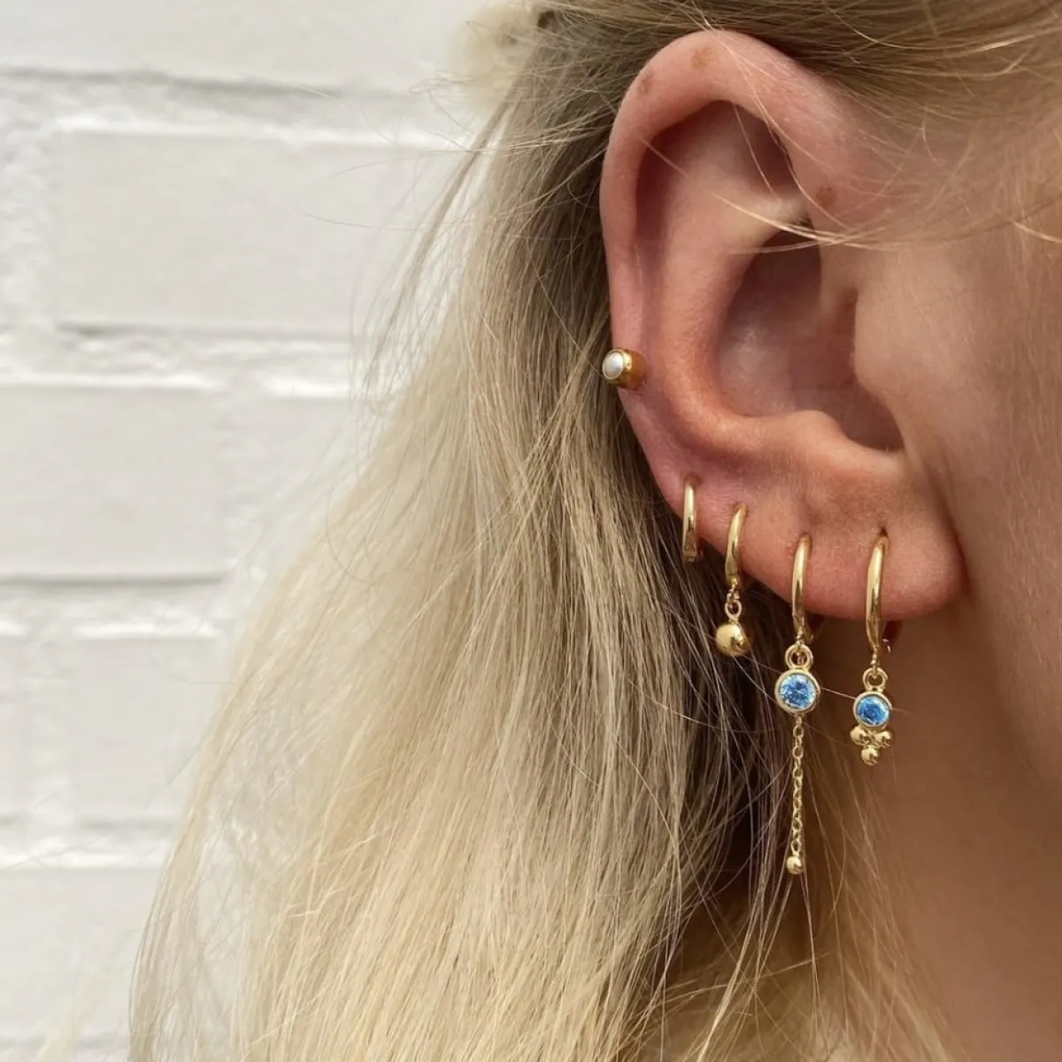 1 lille hoop øreringe med kuglevedhæng. Denne hoop har også kliklås, hvilket vi elsker! Det gør det så meget nemmere at lukke sine øreringe, og håret sætter sig ikke fast i nogen lås.