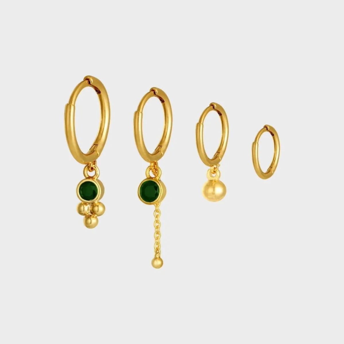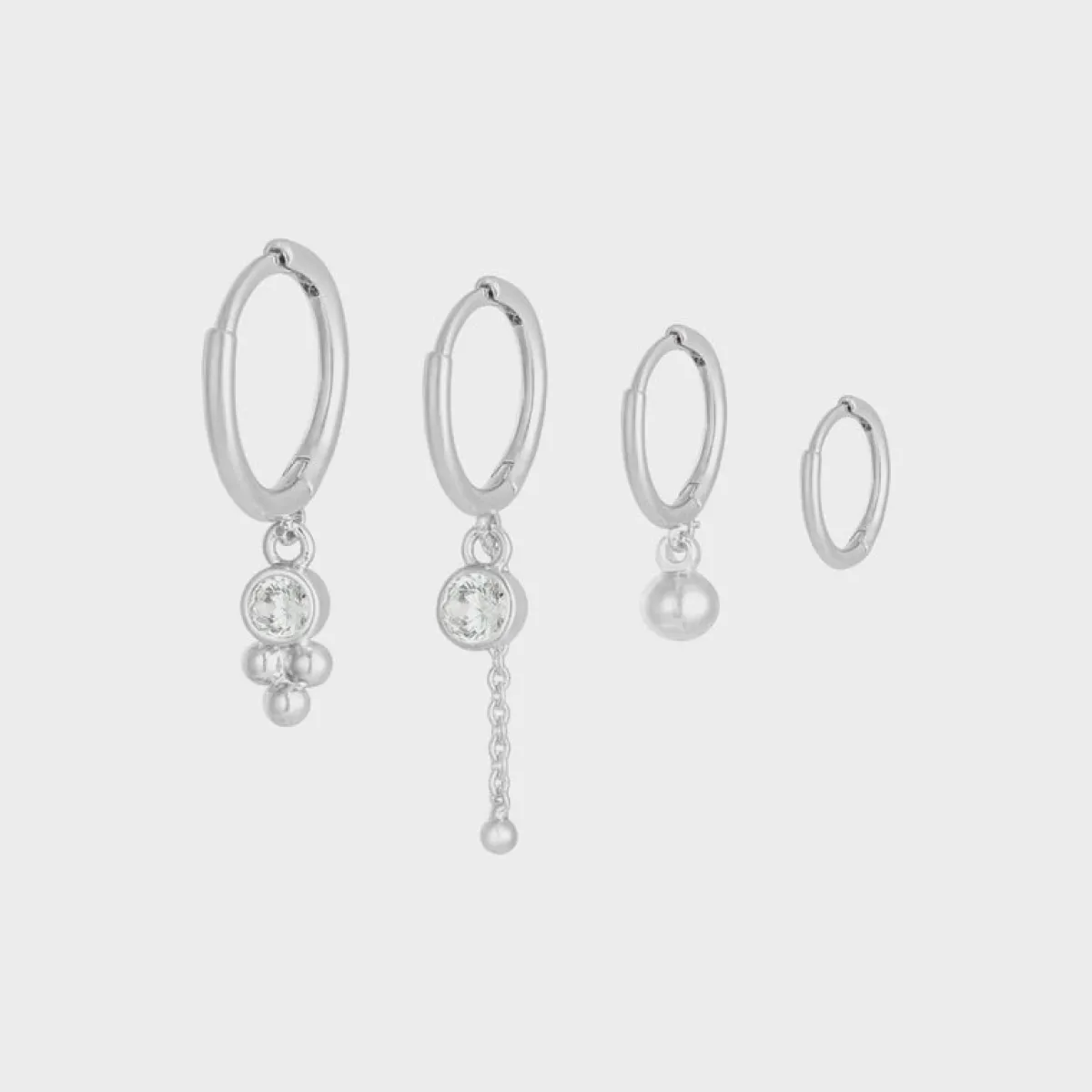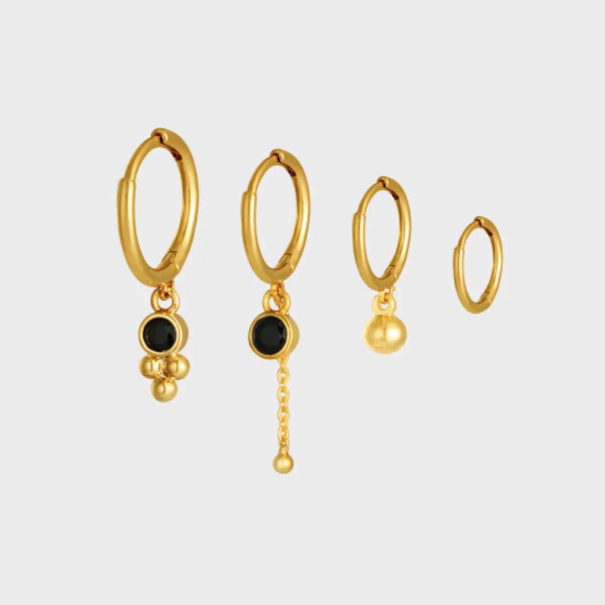 Dette hoop sæt består af 4 hoops øreringe der matcher hinanden helt perfekt! Vi elsker at bruge ørerringe sæt, da det gør stylingen af smykker så meget nemmere! Sættet består af: