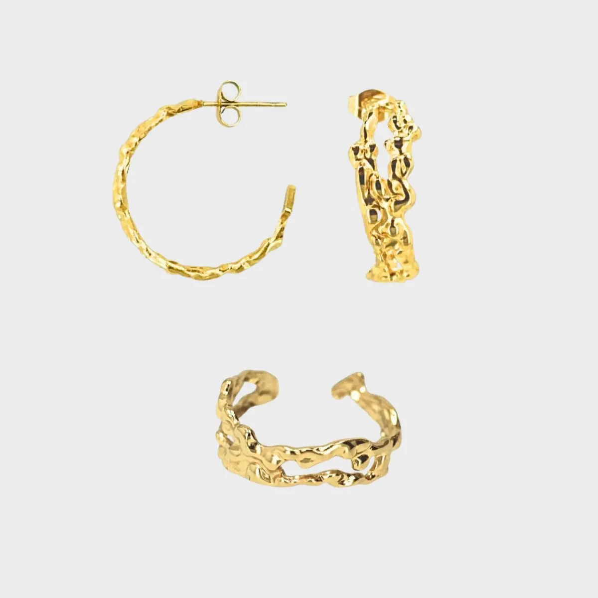 Vores Mocca Mix er det perfekte rustikke sæt med tekstur smykke sæt, men masser af detaljer og flotte former. Vores Mocca ring har længe været en vores bedst sælgende smykker, og i selskab med Mocca øreringen skaber de det smukkeste smykkesæt. Vores Mix serie er sat sammen af vores ansattes og kunders stylinger af smykker. Serien skal hjælpe med at give stylinginspiration og komme med gaveidéer. Er man interesseret i kun ét af smykkerne, kan du altid finde dem til salg på hjemmesiden. Du finder Mocca øreringene her og Mocca ringen her .