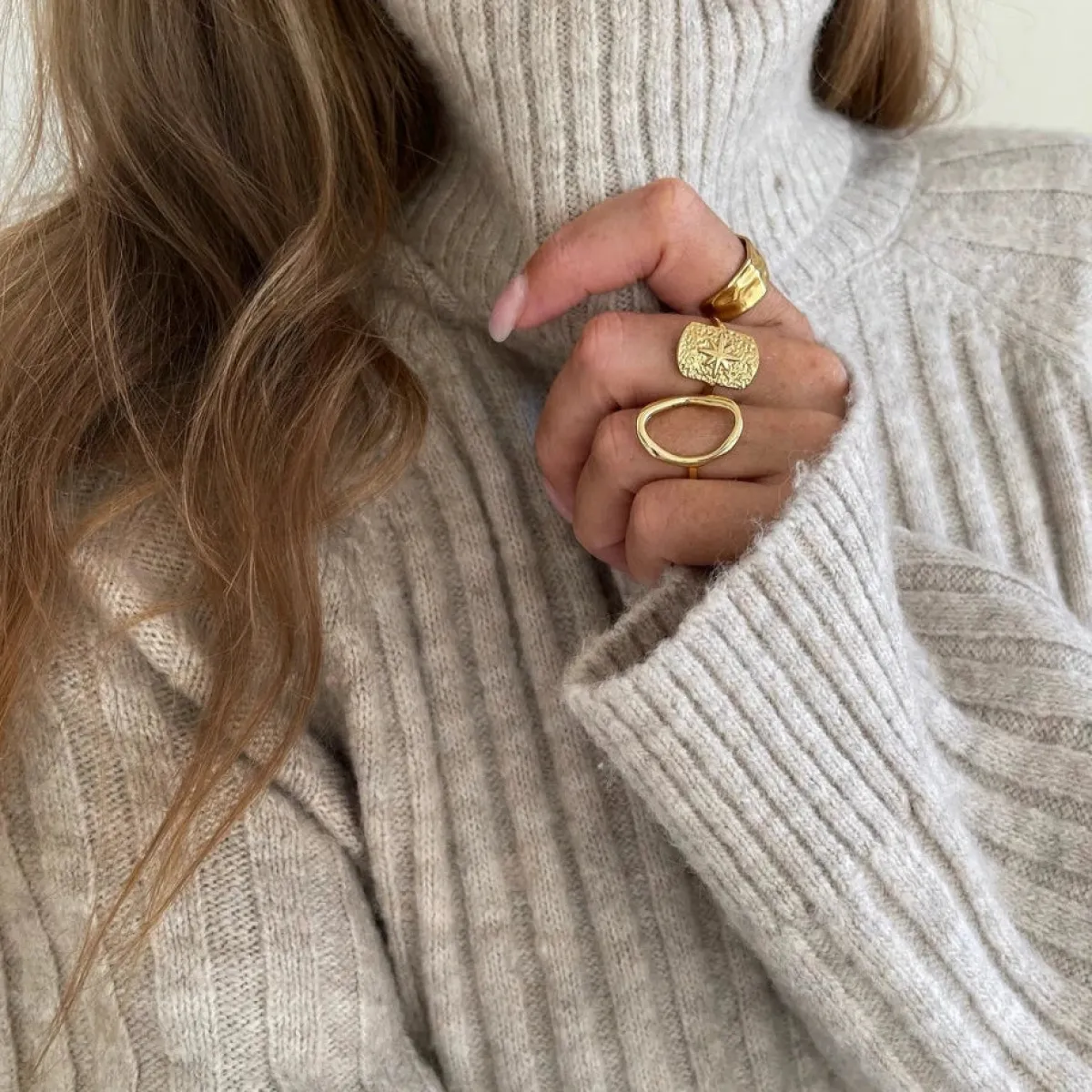 Rund ring i et simpelt men iøjenfaldende design. Vores Silvia Ring er en rund ring i messing. Ringen er justerbar i størrelsen så du kan tilpasse ringen til netop den finger du ønsker at bære den på. Ringen er chunky men stilren og er perfekt til de dage hvor du har et helt simpelt outfit på. Stack den med andre fine ringe eller lad den smukke runde ring tale for sig selv.