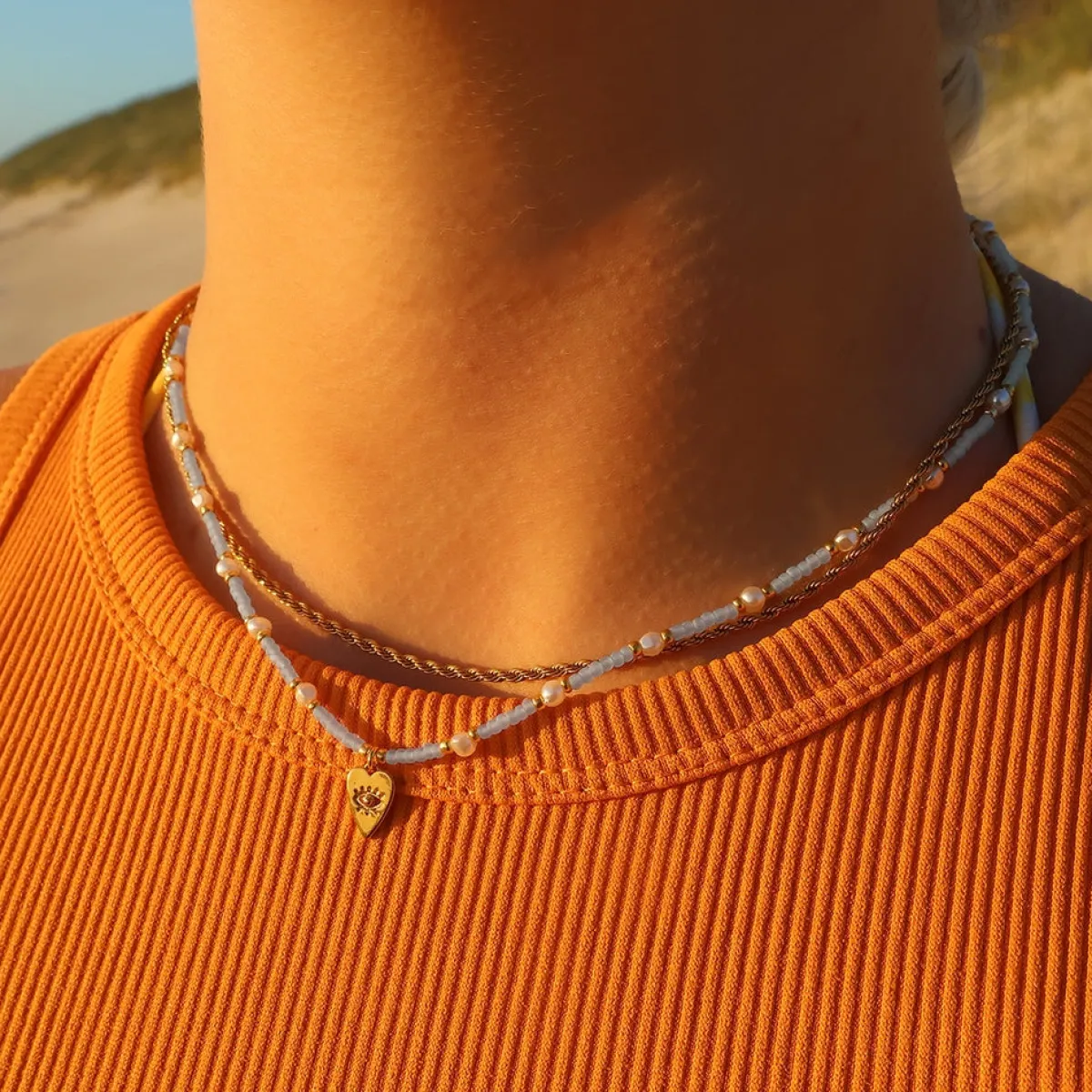Winther Studio Thalassa Heart Halskæde blå/hvid/guld Outlet