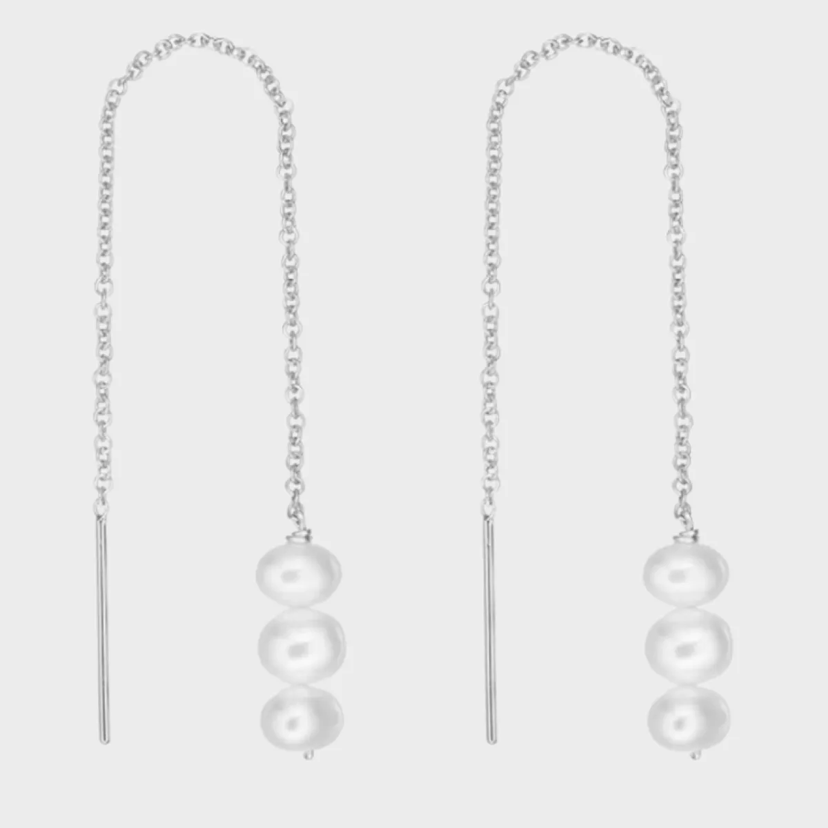 Super fine kædeøreringe, som kan trækkes igennem øret så man kan variere hvor lang øreringen skal være. Kan bruges for sig eller styles med eksempelvis vores Julia Pearl Ørestikker .