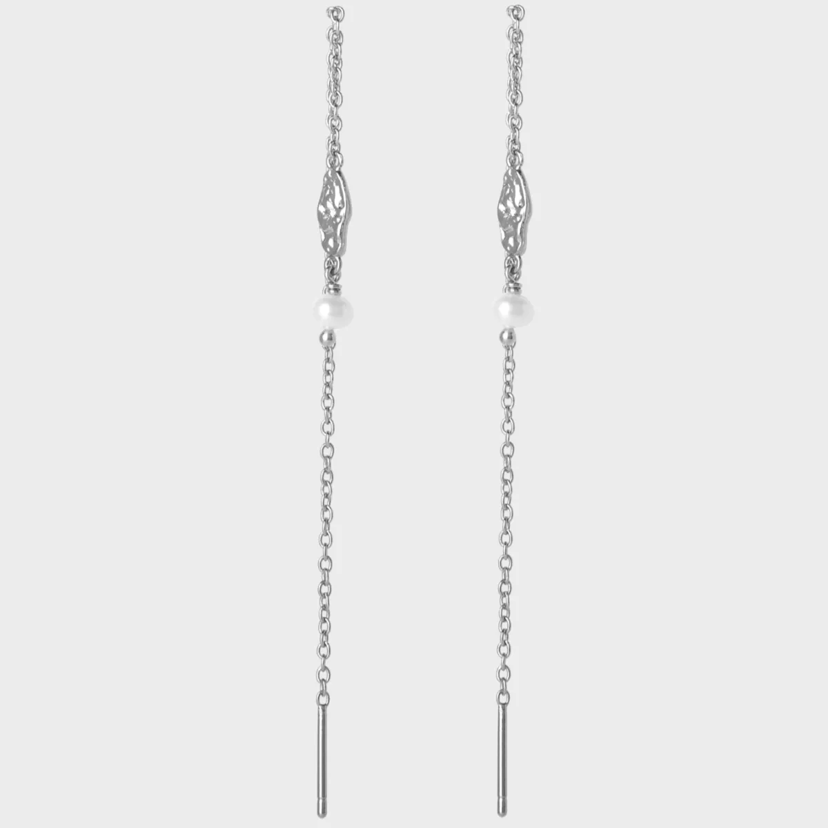 Smukke kædeøreringe med vedhæng bestående af perle og messing-belagte blade.