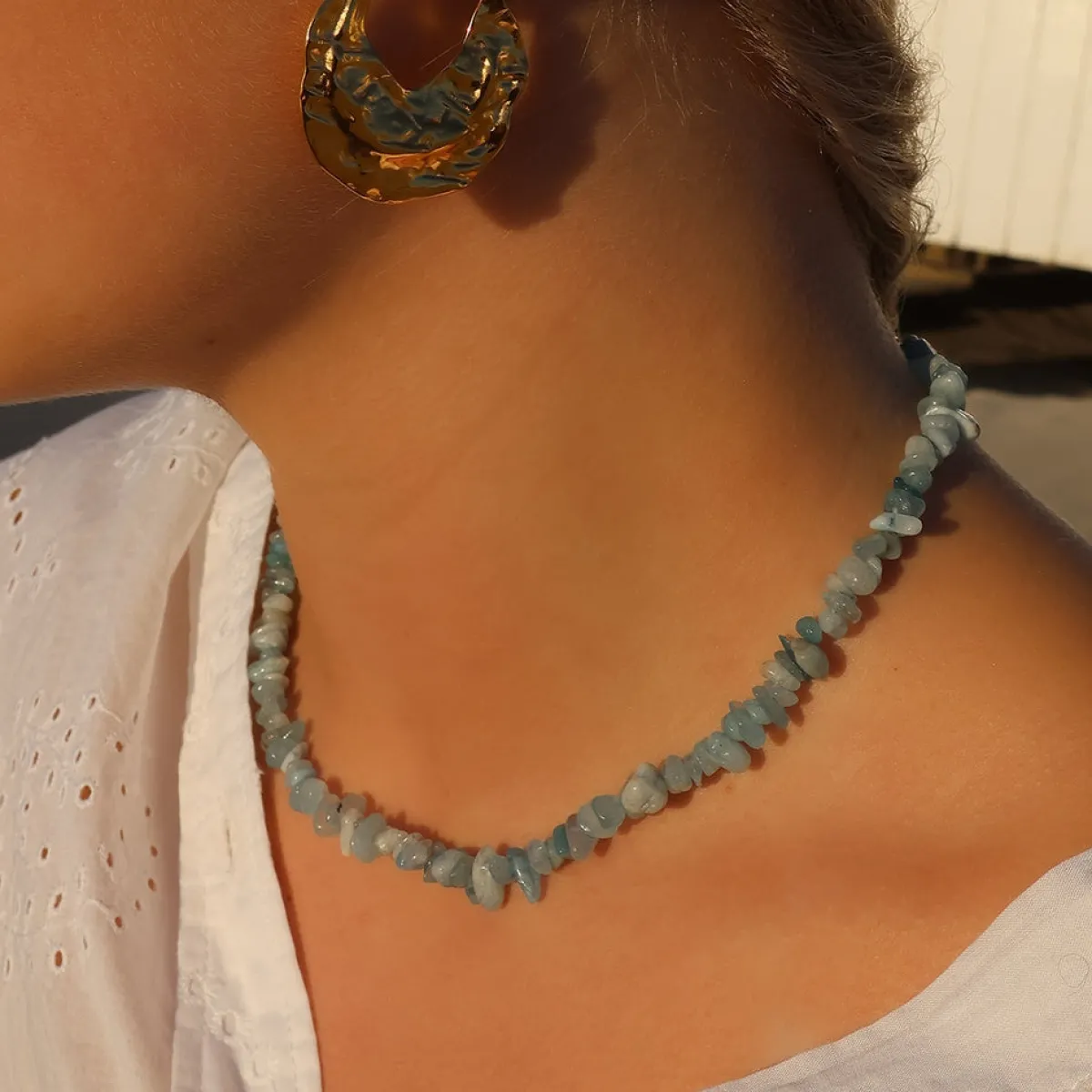 Smuk og chunky halskæde, inspireret af havet og krystaller