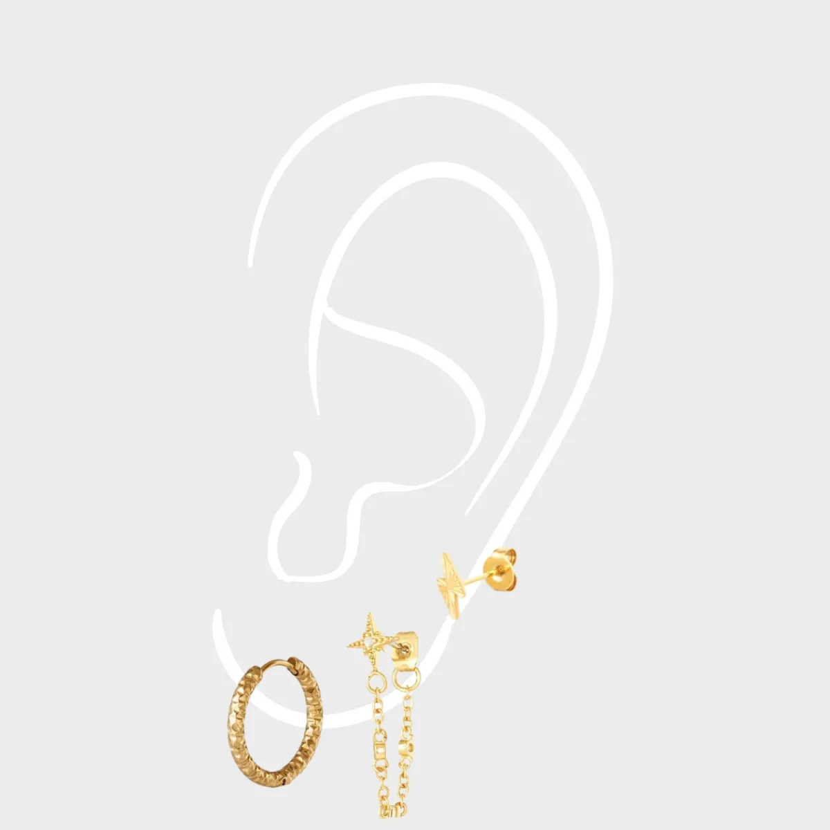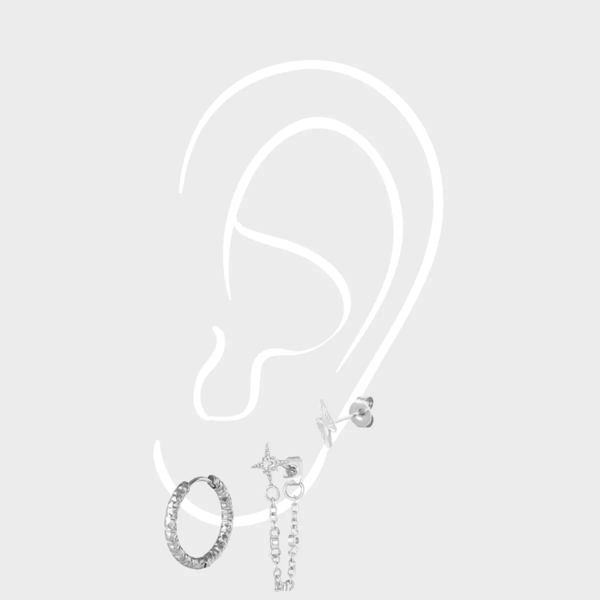OBS! Sættet består kun af 3 individuelle øreringe, så ønsker du 3 øreringe til hvert øre, skal du bestille 2 par