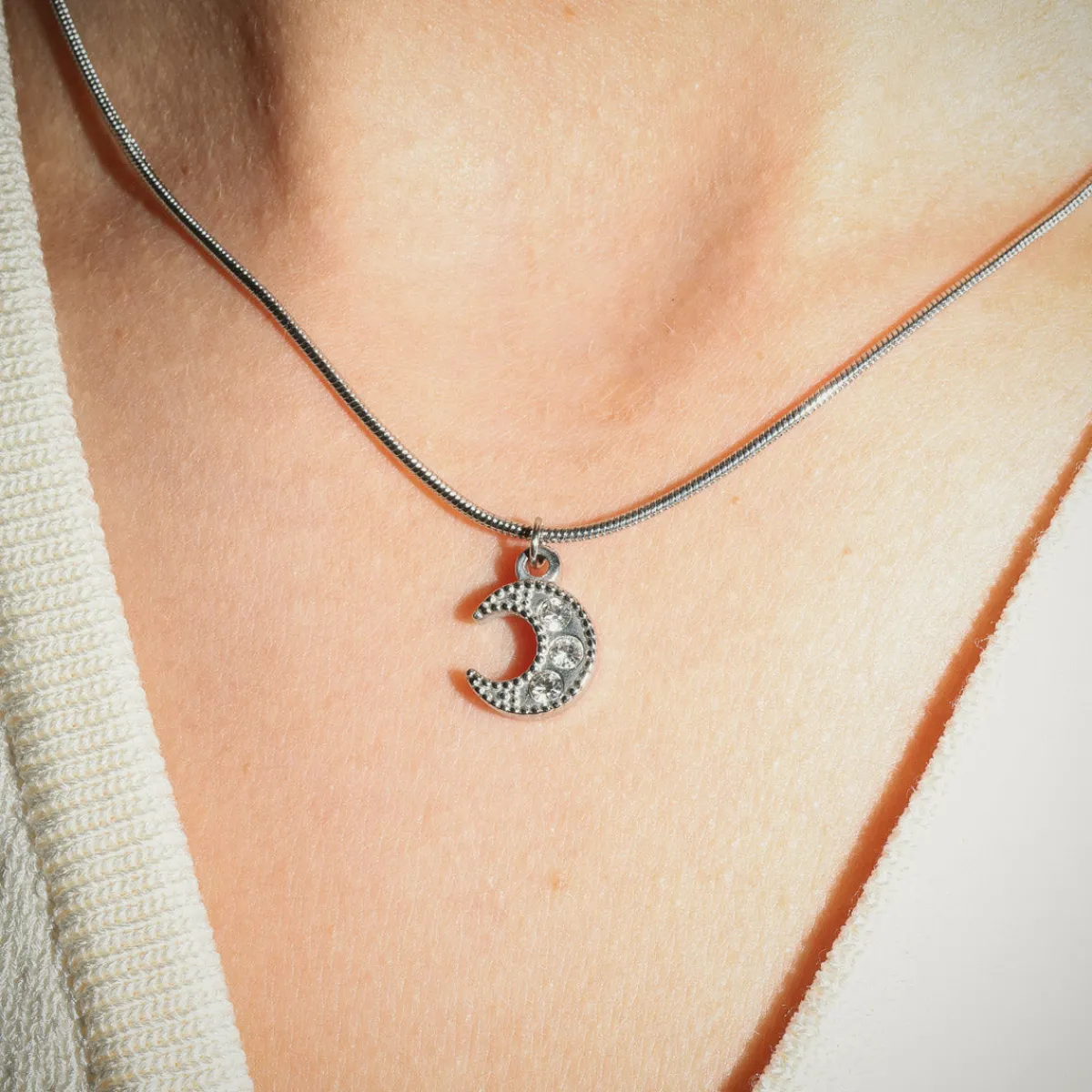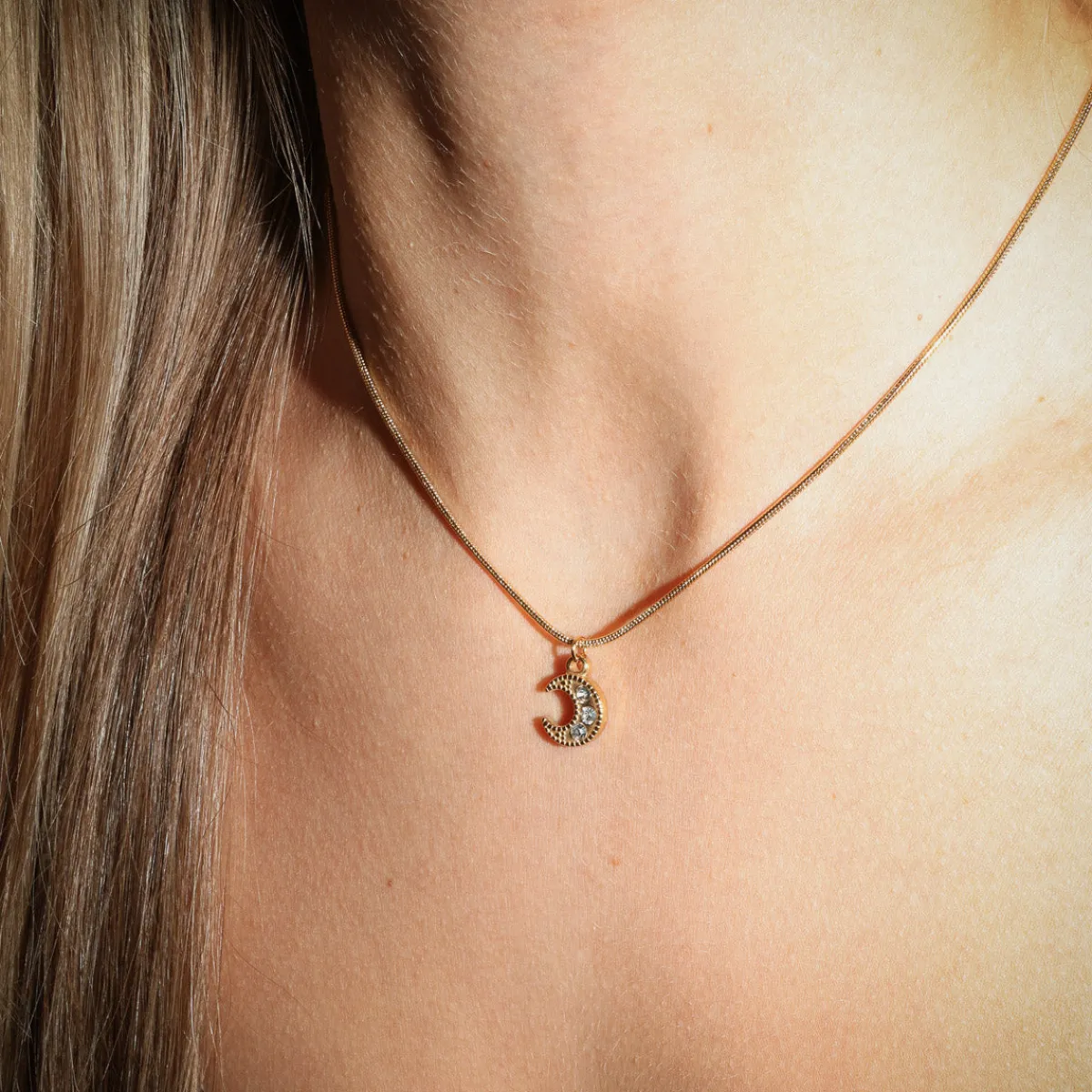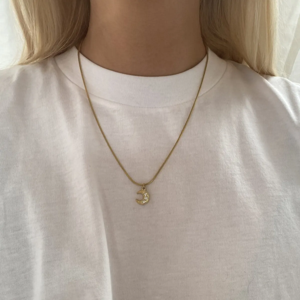 Smuk og blank halskæde med et fint måne-vedhæng.