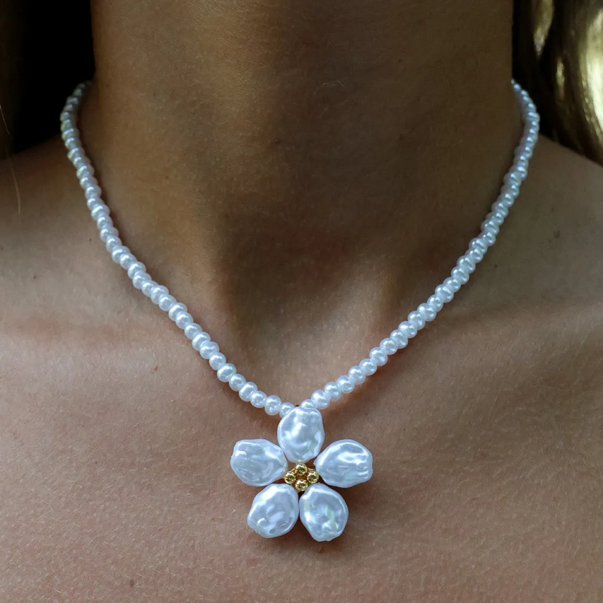 Pift dit outfit op med vores smukke og elegante Pearly Bloom Halskæde