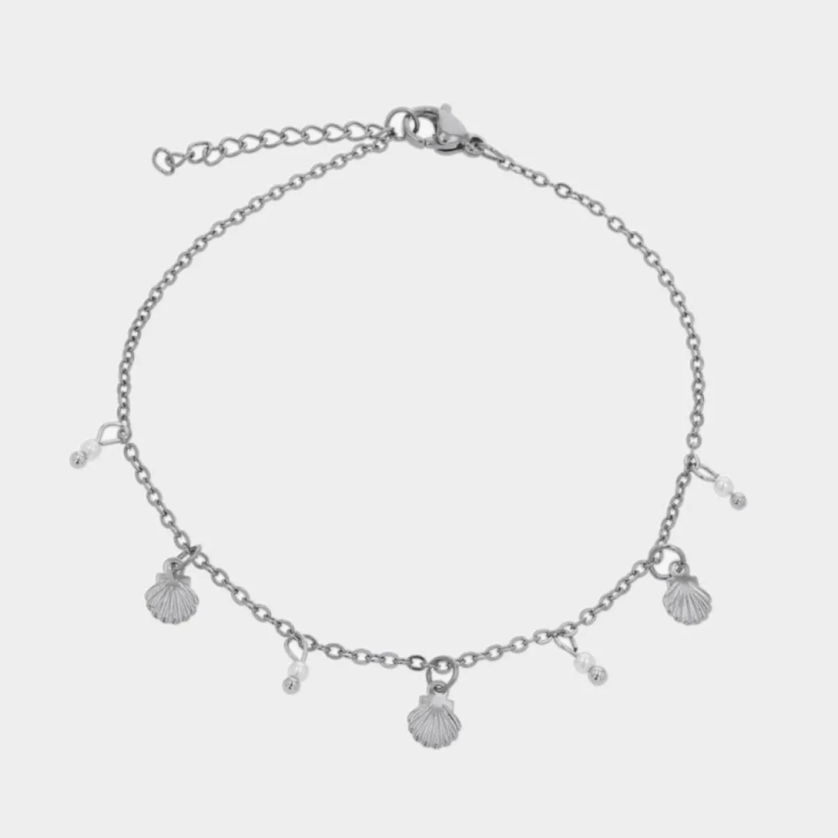 Denne smukke ankelkæde er designet med inspiration fra strandens muslinger og havets perler.