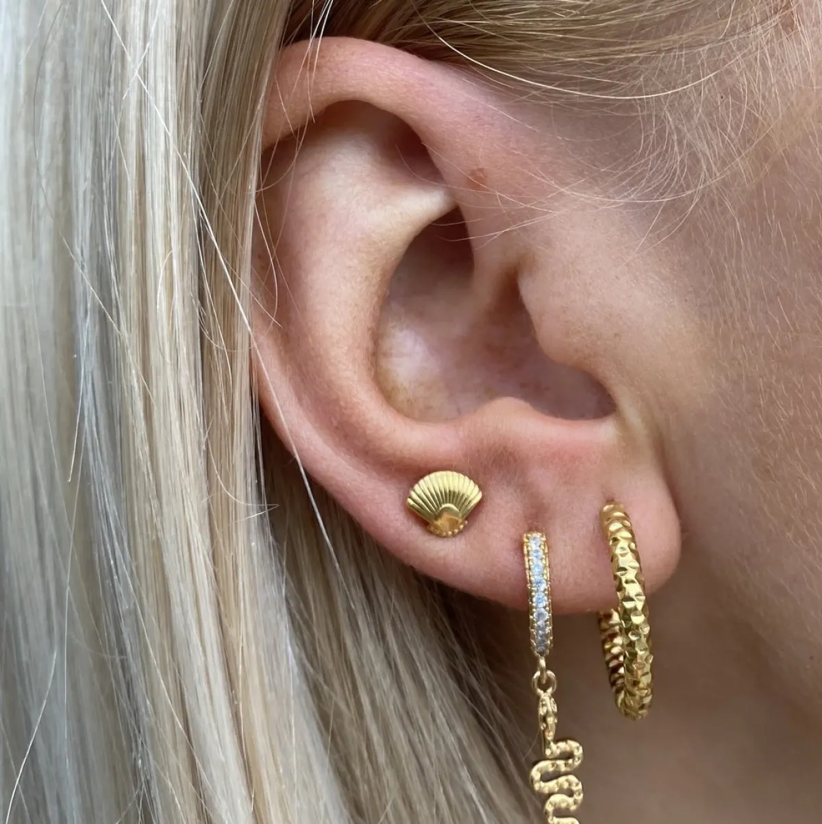 Vores Shelly muslinge øreringe er et smykke af mange, som for alvor kan skabe feriestemning. Øreringene er former som små muslinger, som gør at man kan få et beachy look, med klassiske detaljer. De passer perfekt sammen med vores andre muslingeskal smykker.