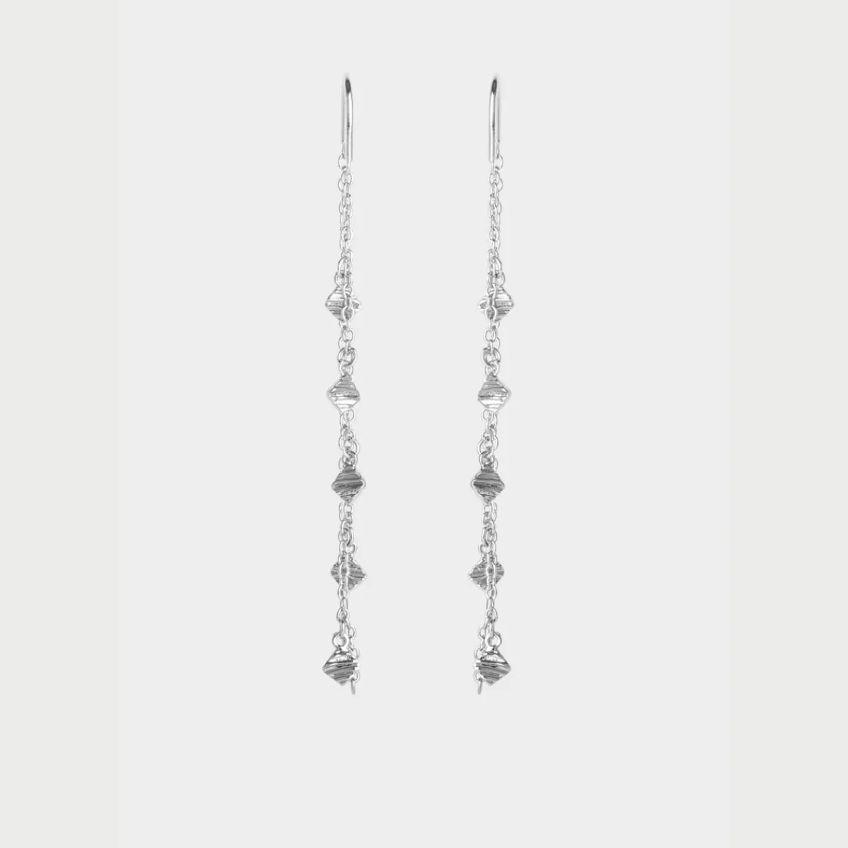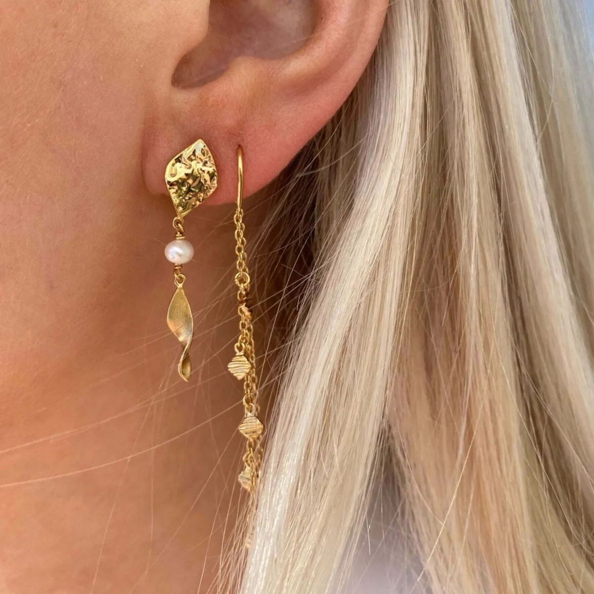 Disse kædeøreringe er udsmykket med smukke detaljer, der tilføjer et unikt og edgy twist til det klassiske kædedesign. De kan bæres alene for et stilfuldt og moderne udtryk, men kan med fordel matches med vores Theato ørering for et mere iøjnefaldende og sammensat look, som vist på billedet.