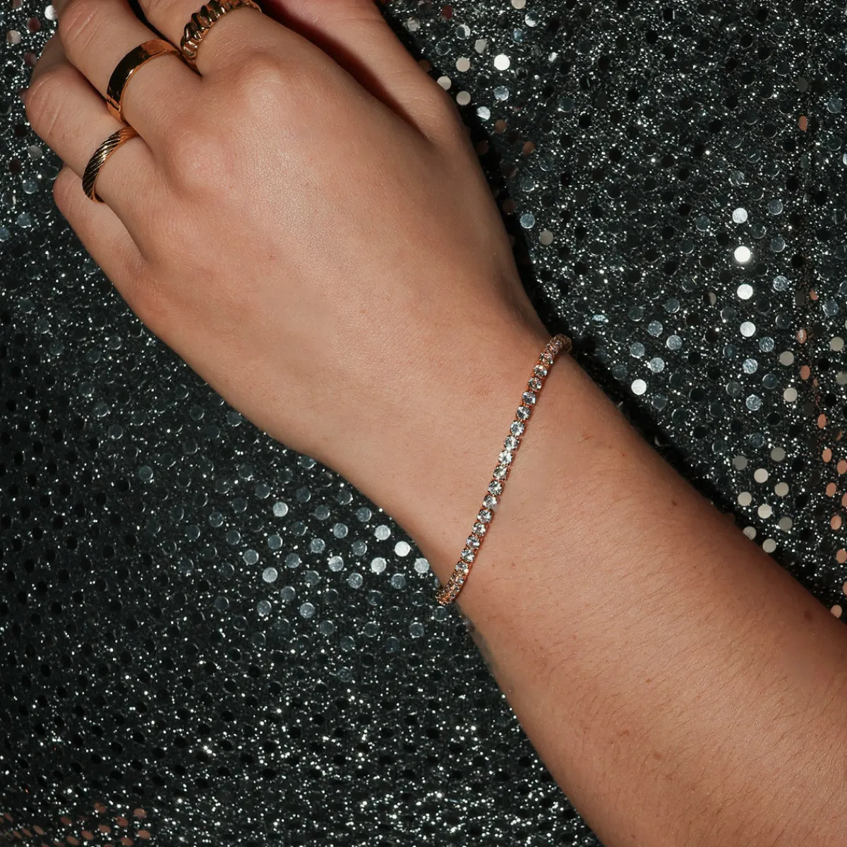 Et smykke, der kombinerer enkelhed med glamour, og tilføjer et skinnende og luksuriøst touch til dit look. Det elegante design gør armbåndet perfekt til både hverdagsbrug og særlige anledninger, hvor du ønsker at stråle lidt ekstra.