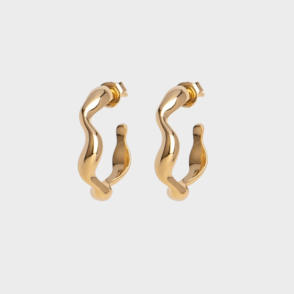 Vores elegante Wavy øreringe kombinerer bløde, runde former med et enkelt og tidløst design, der gør dem perfekte til både hverdag og festlige lejligheder. Øreringene kan bæres alene for et minimalistisk, sofistikeret udtryk eller kombineres med andre smykker for et mere personligt og unikt look.
